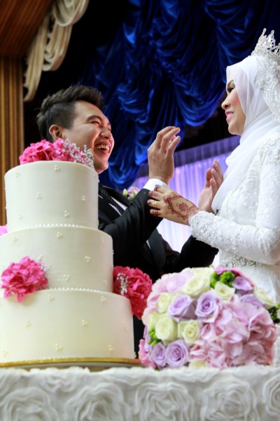 Persandingan yang cukup romantis ala Inggeris dengan pasangan mengayakan busana yang ringkas. Ita sempat menyiapkan kek perkhawinan pasangan ini yang idea deco adalah ilham daripada pasangan raja sehari ini sendiri dengan tema simple and sweet.